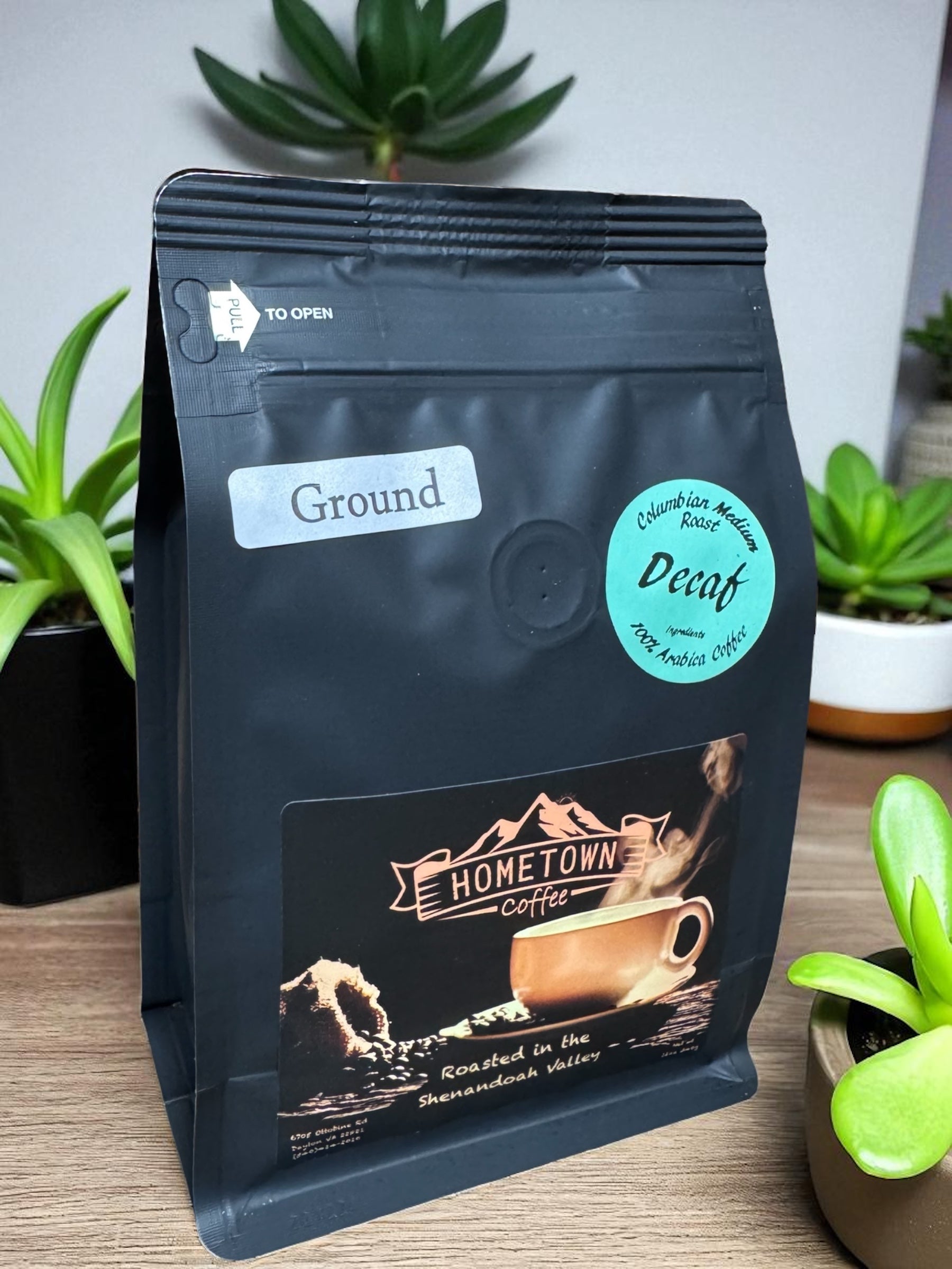 Enjoy the rich, smooth taste of authentic Colombian coffee any time of day—our premium 12oz ground decaf is processed using the natural sugar cane method and fresh roasted right here in the Shenandoah Valley.